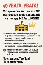 У Сарненській гімназії №3 розпочався набір кандидатів на посаду МЕРА ШКОЛИ!