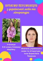 Клеваку Марійку, ученицю 8-Б класу, з III місцем в олімпіаді з української мови та літератури.